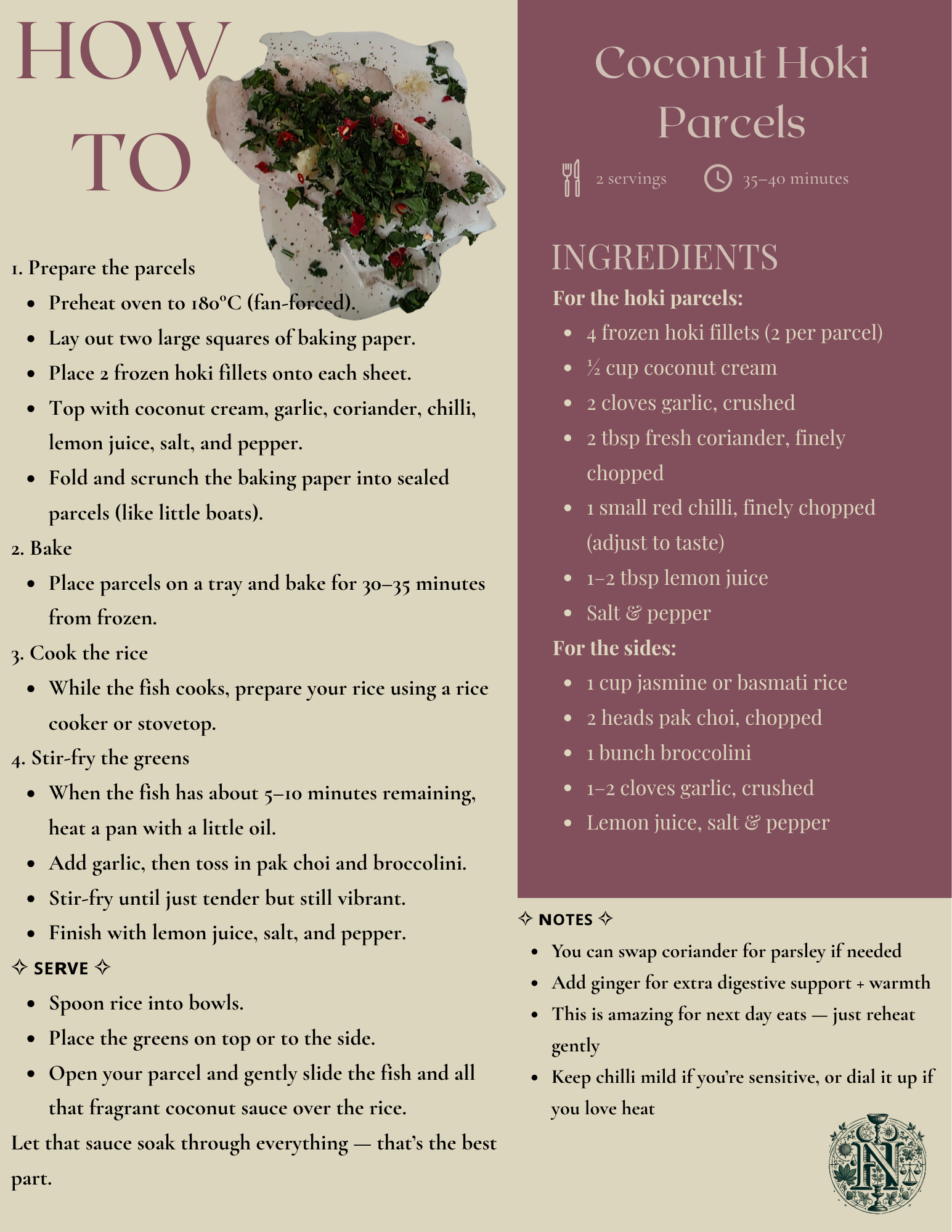 Hoki is such a mild, flaky white fish, so it doesn’t have that overpowering “fishy” taste that can put people off. When it’s baked in coconut cream with garlic, chilli, and fresh herbs, it becomes rich, fragrant, and honestly feels like something you’d order out… but it’s so simple.